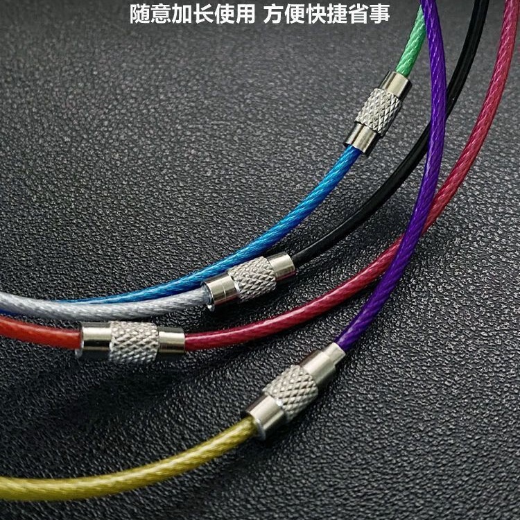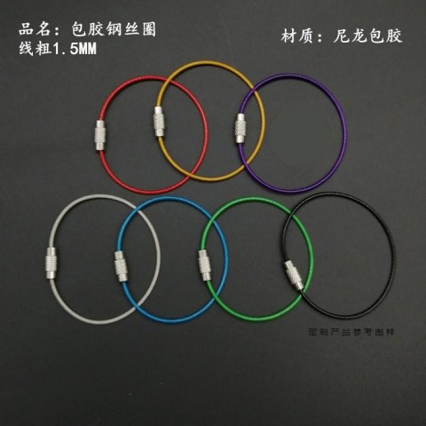 38色源头厂家烤漆钢丝圈喷漆包胶钢丝绳DIY钥匙扣车钥匙炫彩手工