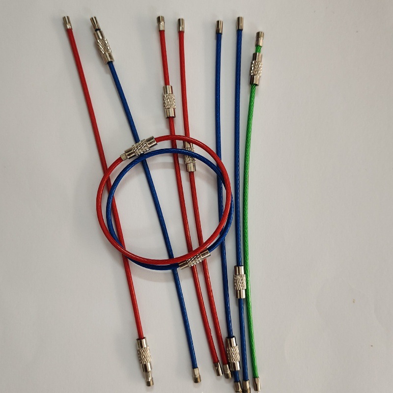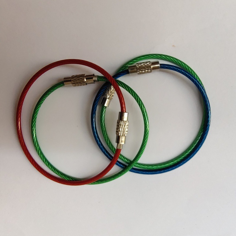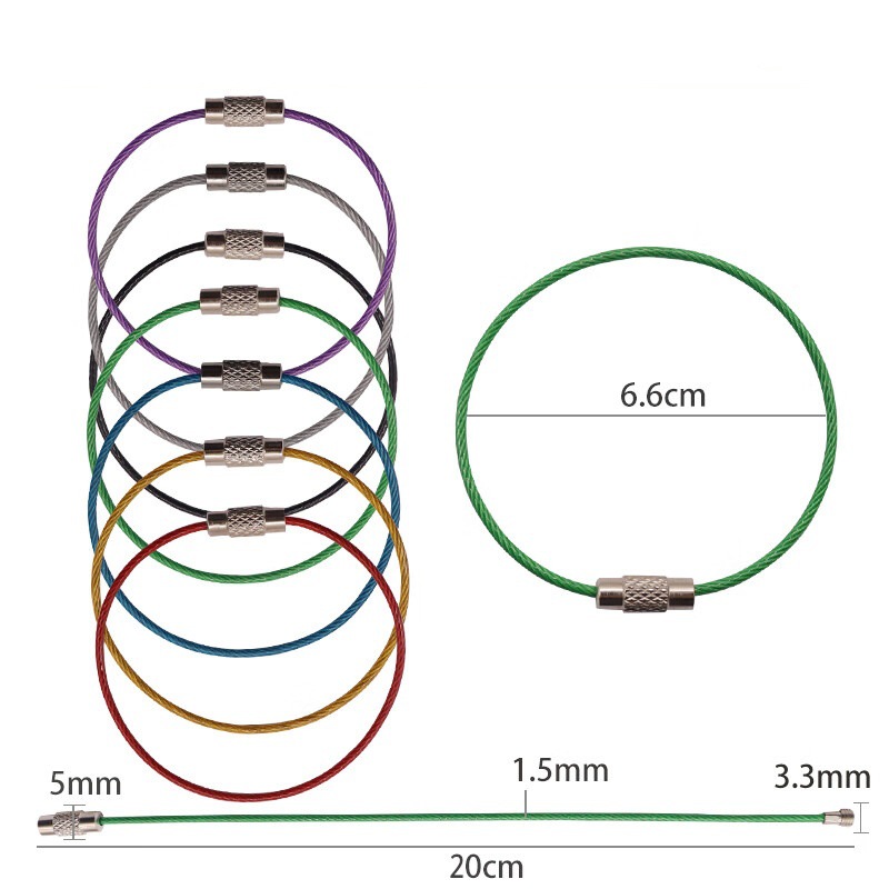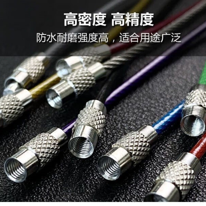 彩虹钢丝线圈钥匙扣吊牌钢丝绳钥匙环不锈钢挂扣DIY车钥匙创意