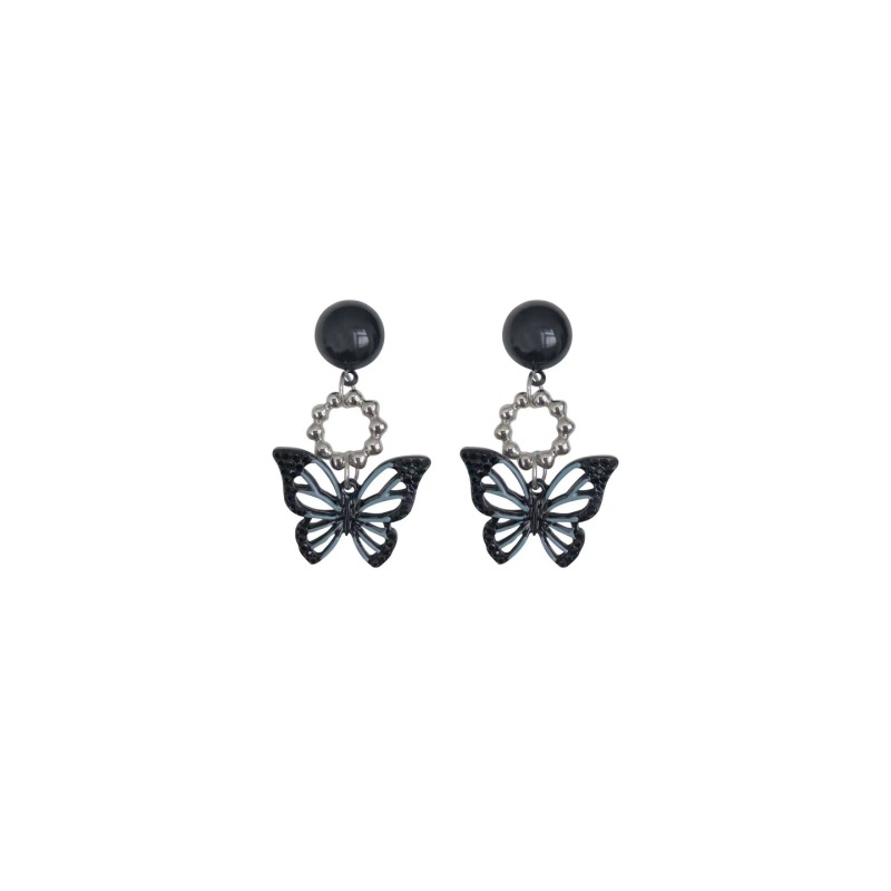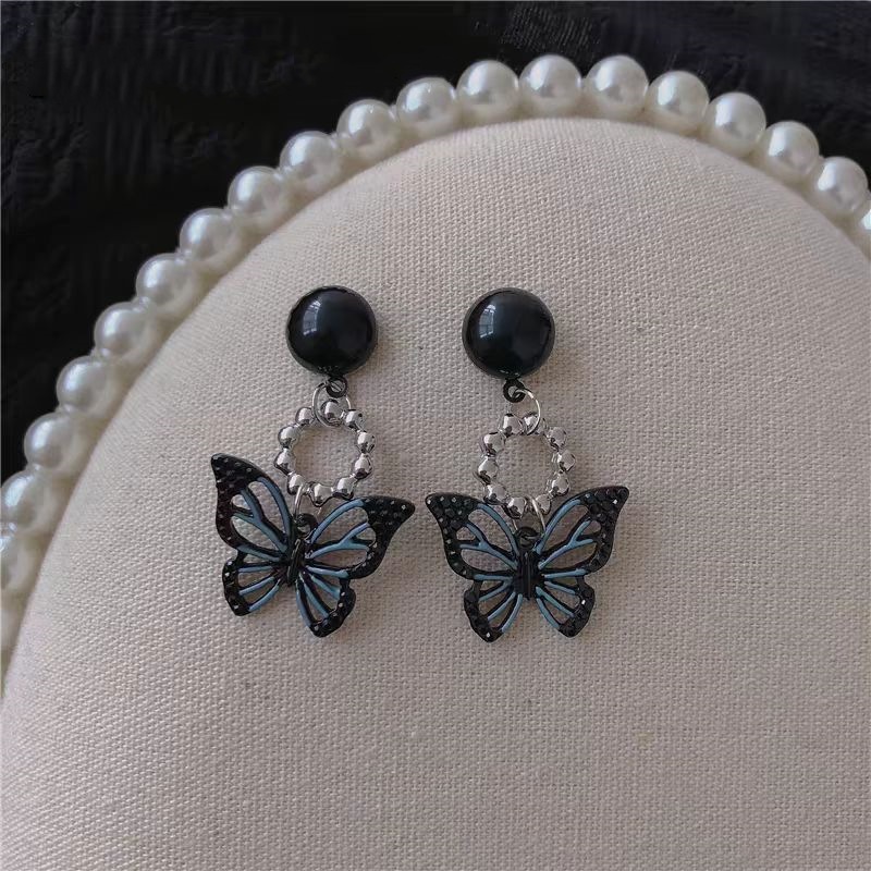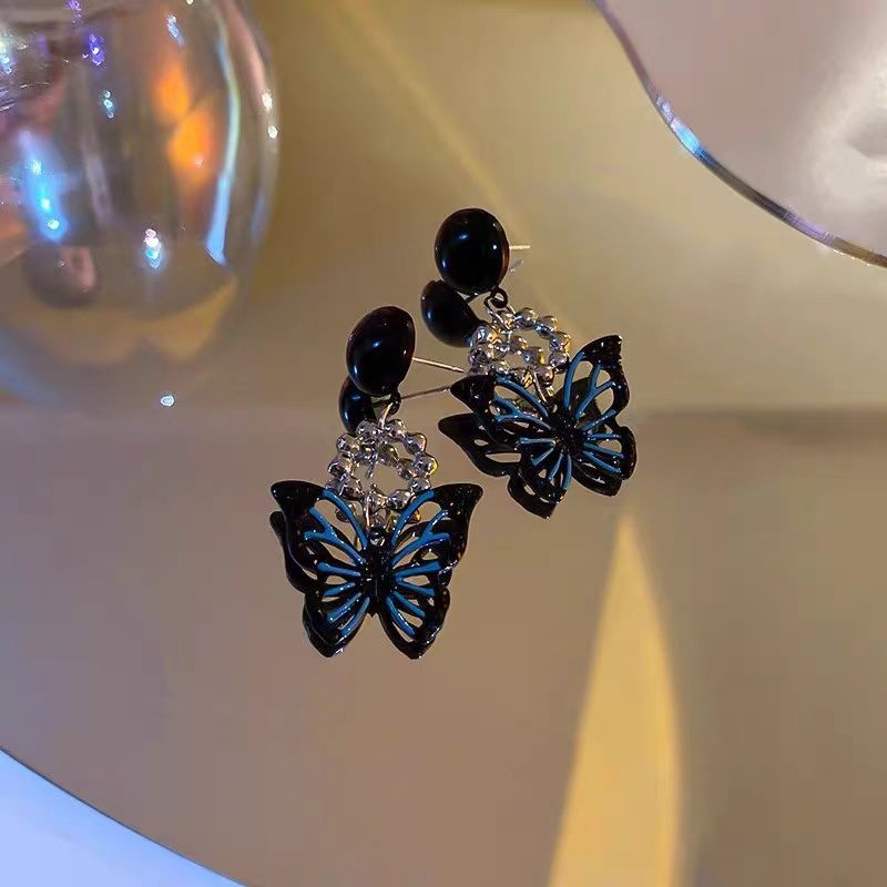 黑色蝴蝶甜酷ins耳环小众设计感复古百搭耳钉时尚气质高级感耳饰