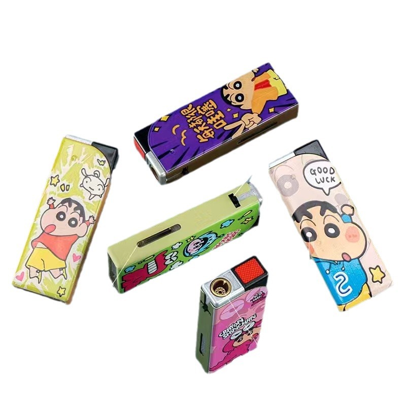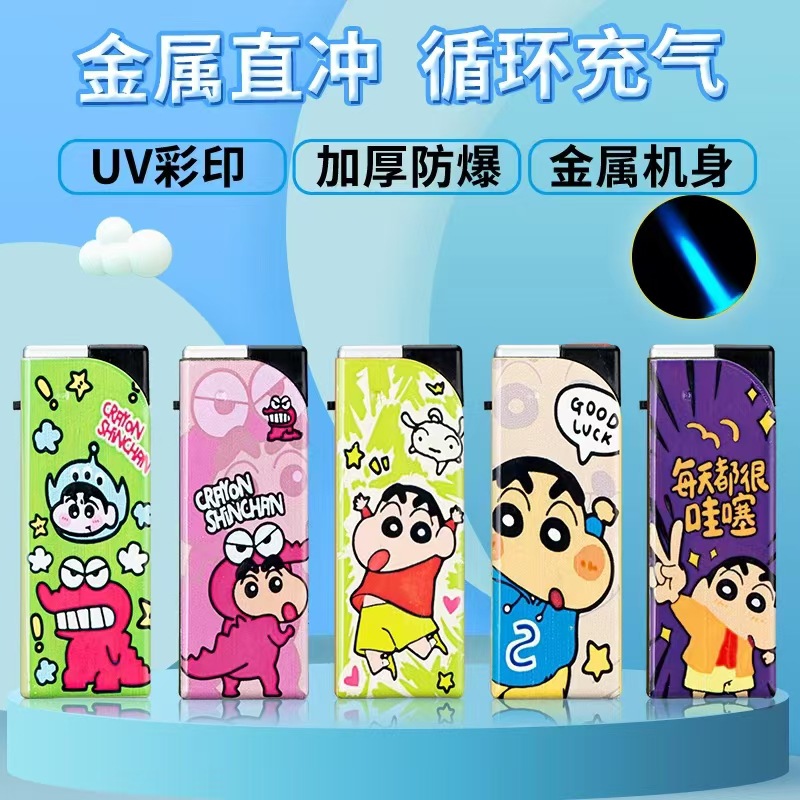 卡通蜡笔小新蓝焰直冲防风打火机潮流便携一次性家用整盒防爆