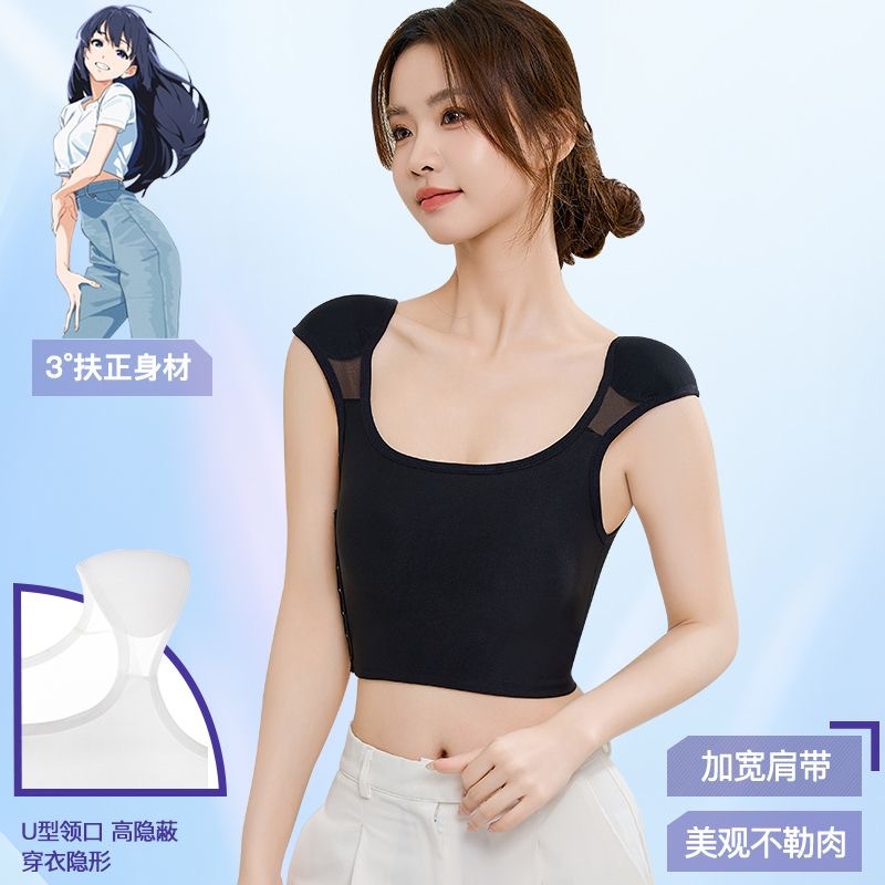 COS新款可调节垫肩塑身束胸运动内衣大胸显小直角肩宽防滑内搭
