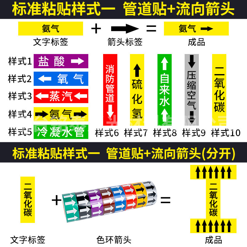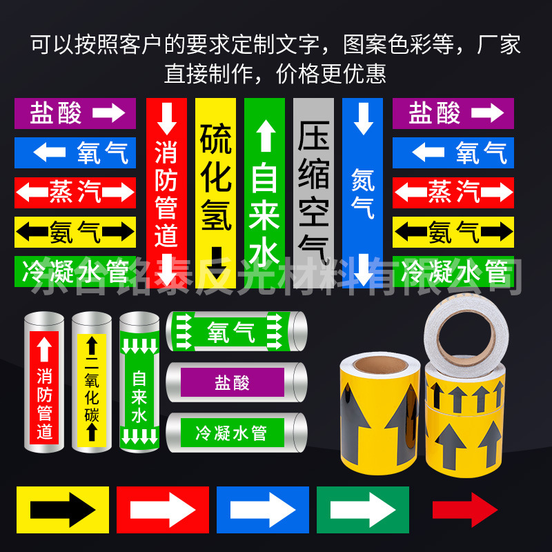 批发管道流向箭头标识反光箭头膜 管道介质流向反光贴纸厂家现货