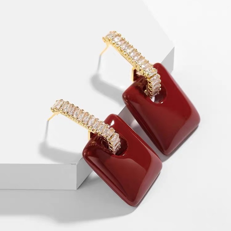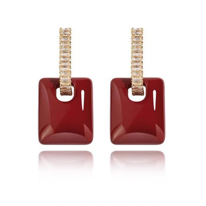 秋冬安可拉红几何女士耳环2024新款轻奢大气高级感过年新年耳坠