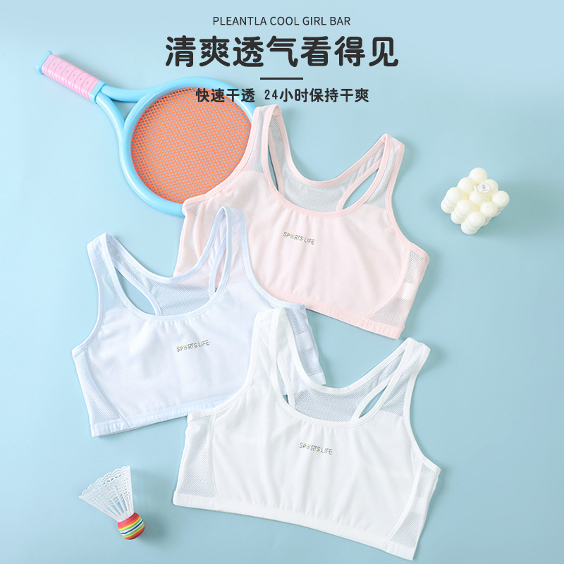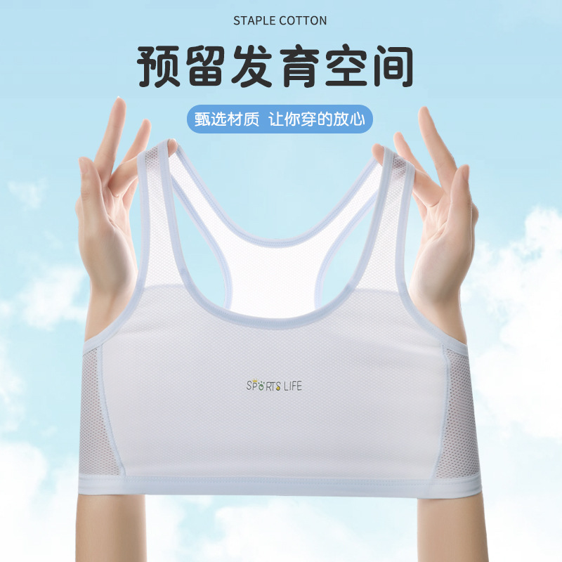 女童背心发育期小学生7-13岁内穿运动少女文胸防凸点内衣带胸垫