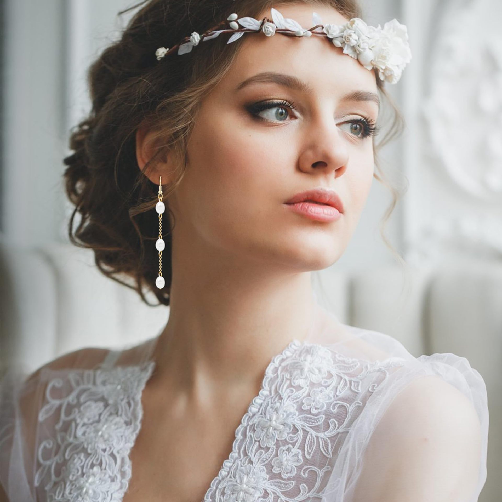 欧美跨境热销 真金黄铜电镀 优雅女士长珍珠项链流苏轻奢气质耳环