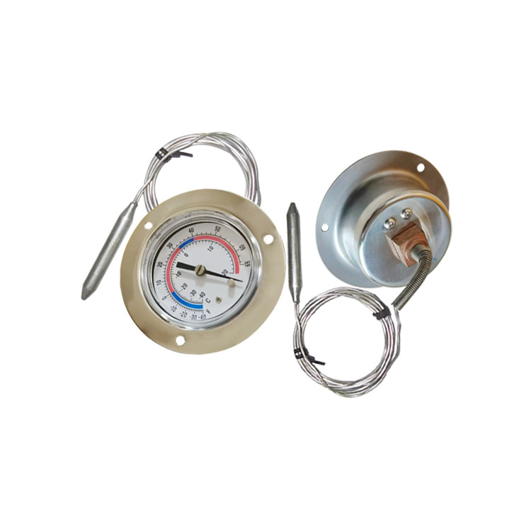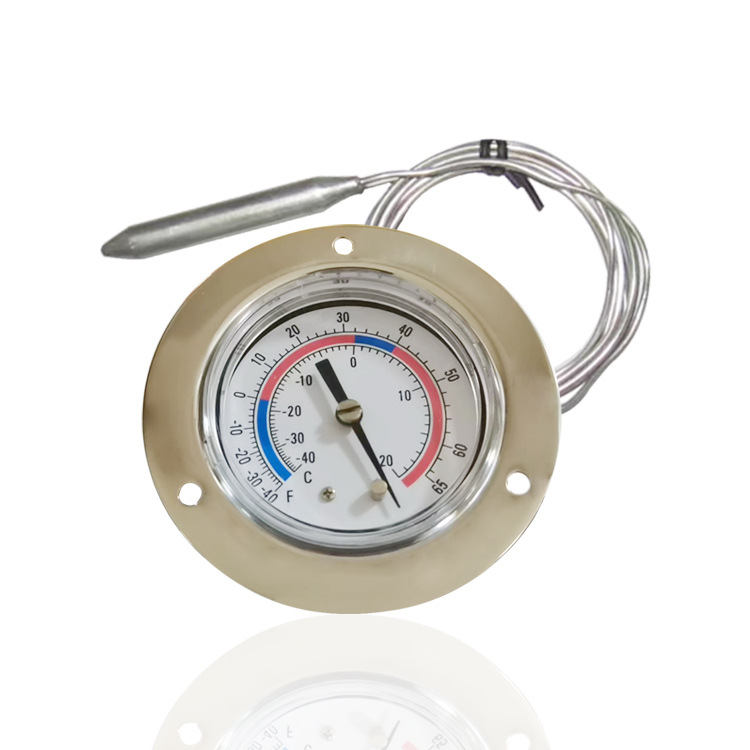 冷库温度计蒸汽毛细管温表不锈钢压力式温度计轴向带边-40~20°C