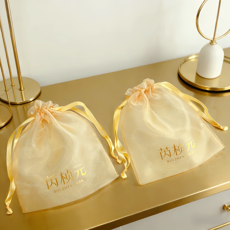欧根纱抽绳束口袋日用品礼品化妆品珍珠紗网纱束口袋精油包装袋