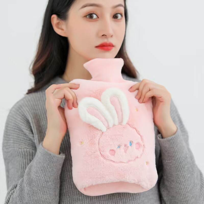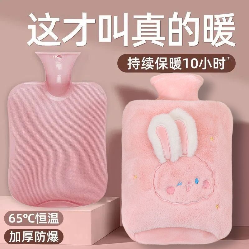 PVC注水热水袋防爆加厚暖肚子毛绒学生可爱灌水暖水袋暖手宝
