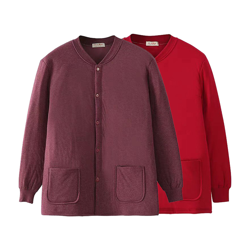 中老人女士保暖内衣套装夹棉加厚纯棉大码对襟开衫老人棉衣