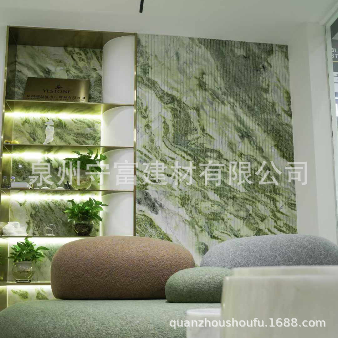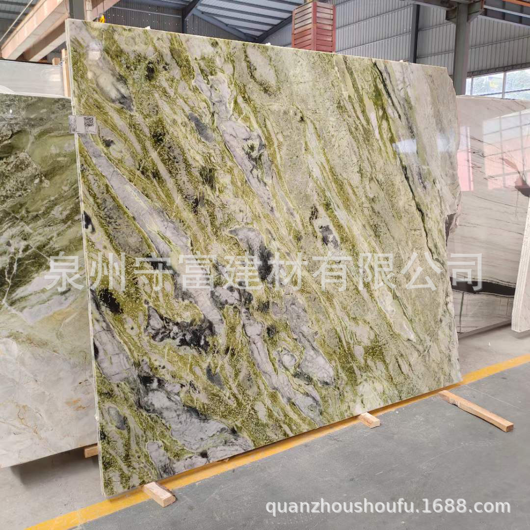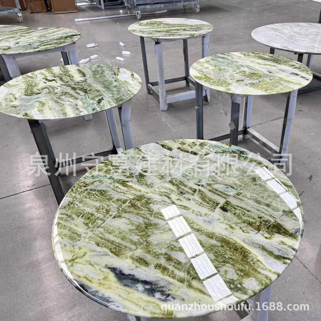 绿翡翠大理石台面餐桌 家用奢石意式茶几客厅背景墙装饰