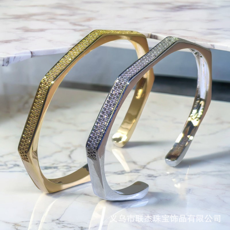 八方来财时尚排钻满天星铜镀真金开口手镯跨境热销厂家批发