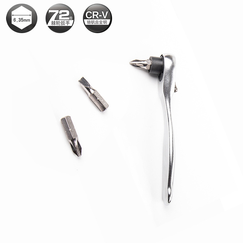 跨境72齿迷你棘轮扳手螺丝批头刀1/4小飞套强磁手动工具棘轮扳手