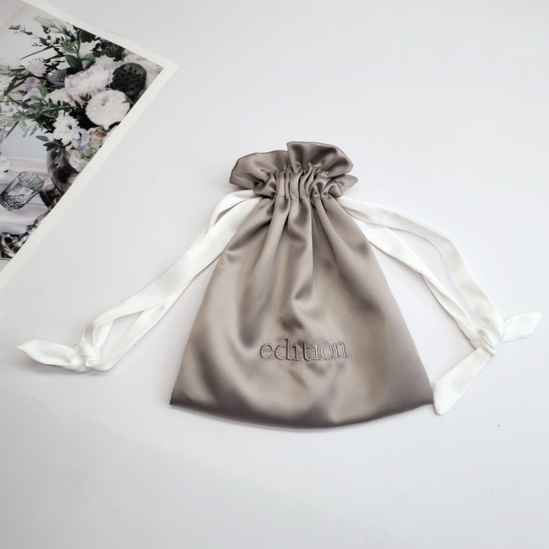 跨境双层仿真丝束口袋色丁布束口袋礼品饰品护肤品丝绸绸缎收纳袋