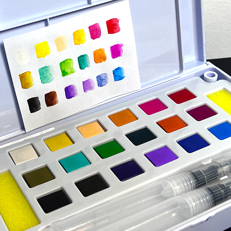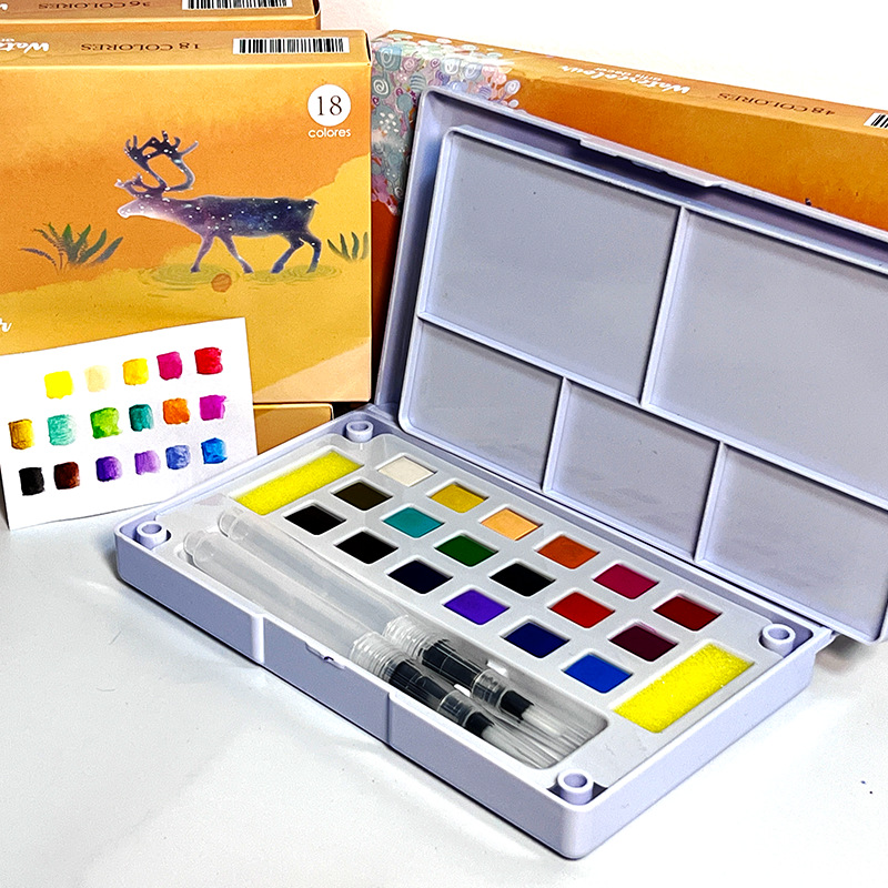 跨境电商专供固体水彩套装18色初学者水粉颜料小学生美术用品调色