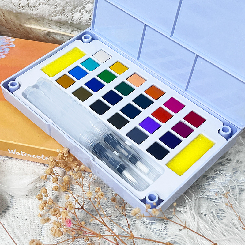 固体水彩套装24色初学者水粉颜料小学生美术用品环保无毒