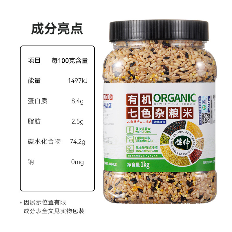 德伟有机七色杂粮米紫米糙米1000g罐装七色杂粮健身粗粮组合粗粮