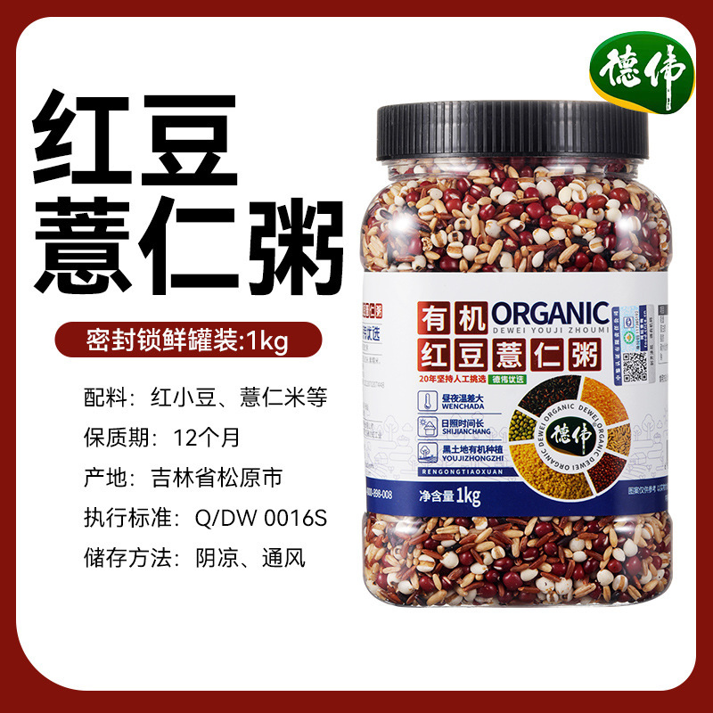 德伟有机红豆薏仁粥1000g罐装粗粮原料营养早餐薏米粥杂粮厂家