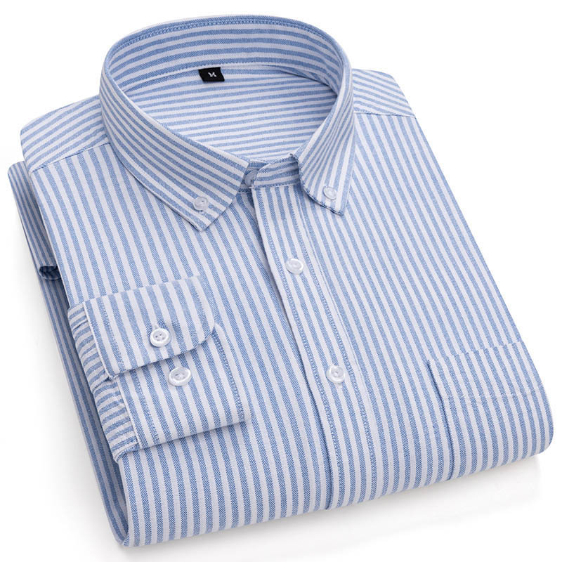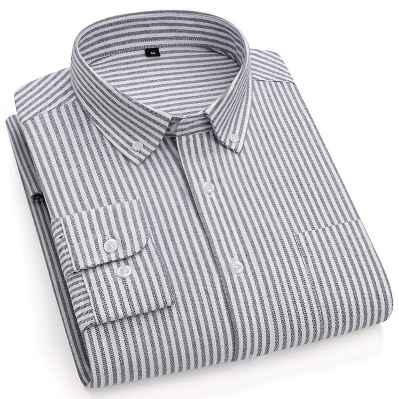 男士全棉休闲长袖衬衫牛津纺免烫易打理条纹男式衬衣