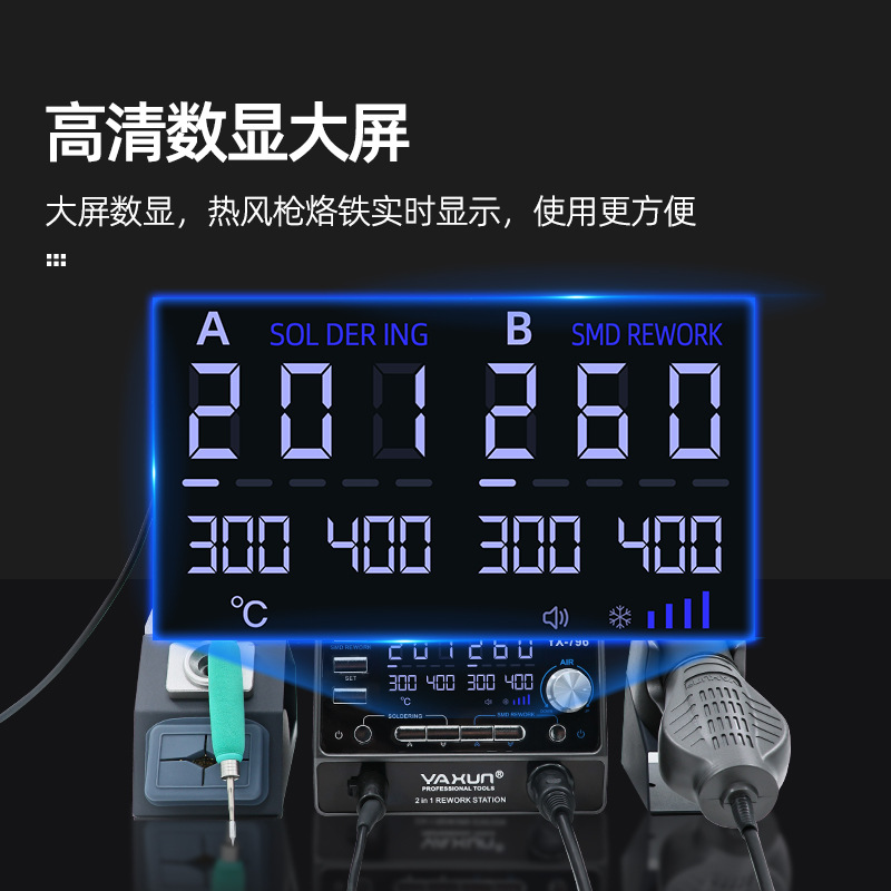 YAXUN大功率二合一热风枪电烙铁焊台580W精密C115/C210C/245焊锡