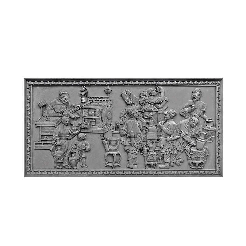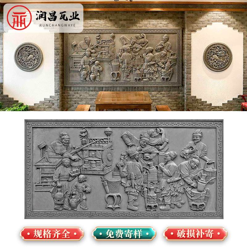 斗茶图砖雕 中式茶楼酒店迎宾墙装饰壁画 古建浮雕仿古长方形砖雕