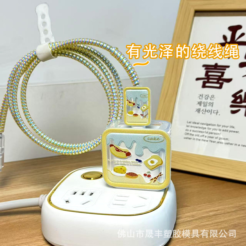 卡通套适用苹果18/20w充电器通用保护套防刮花软壳彩绘图案防折断