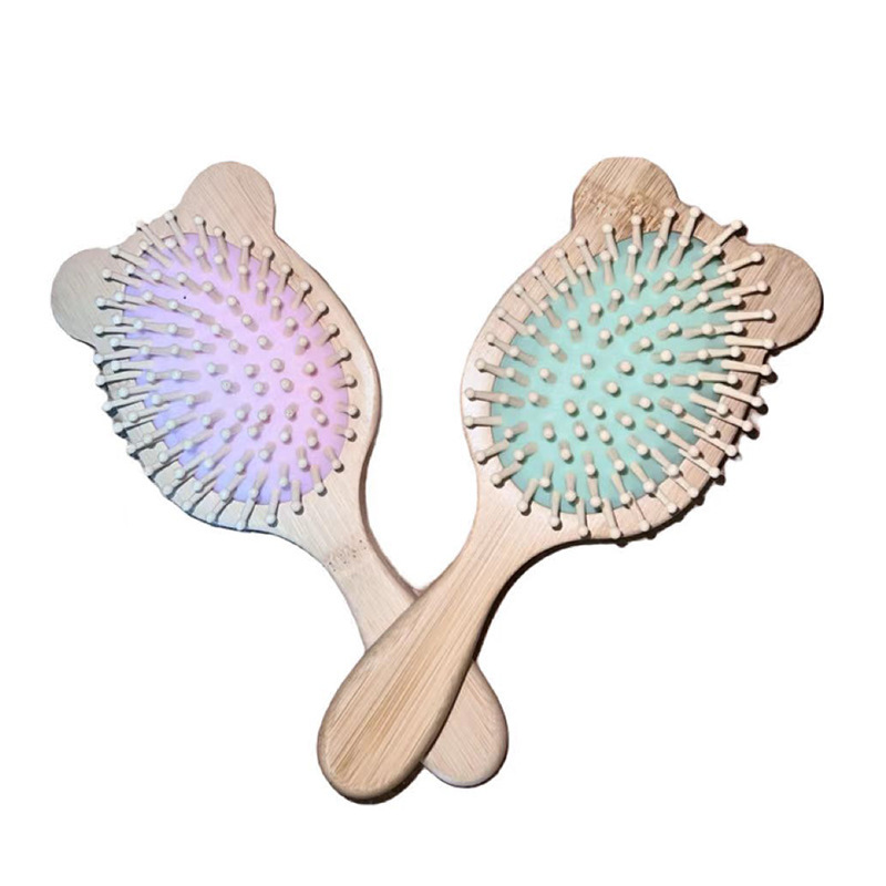 可爱熊猫梳楠竹气垫按摩梳防静电蓬松卷发梳子头盘经络气囊木梳