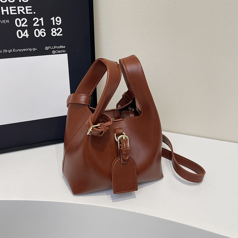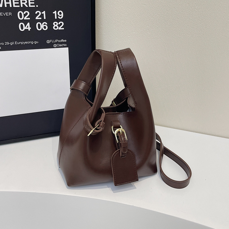 跨境2024新款秋季复古质感小包包女时尚简约水桶包小众设计斜挎包