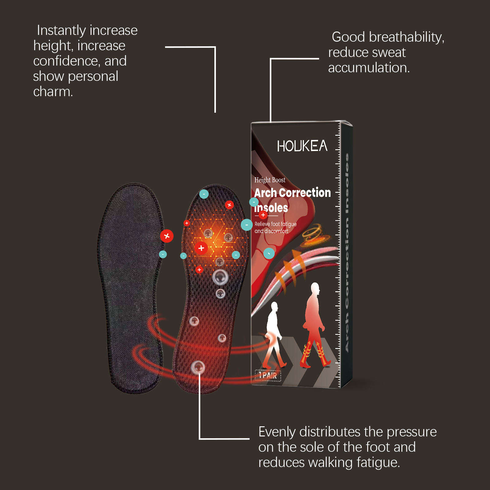 HOUKEA 鞋垫 身体护理柔软舒适弹力鞋垫户外运动跑步防滑耐磨透气
