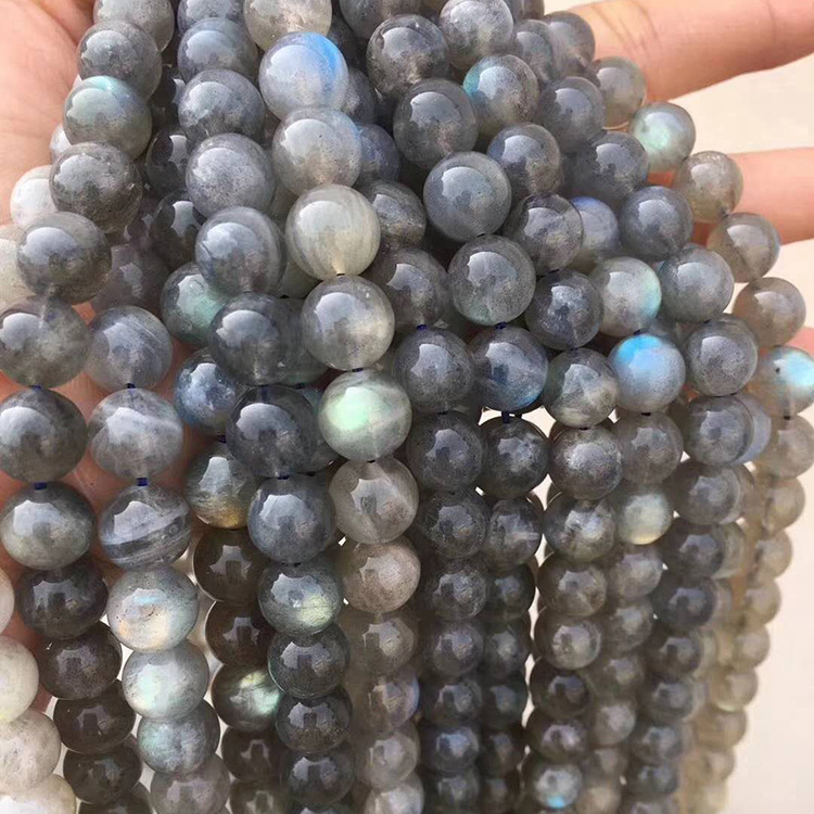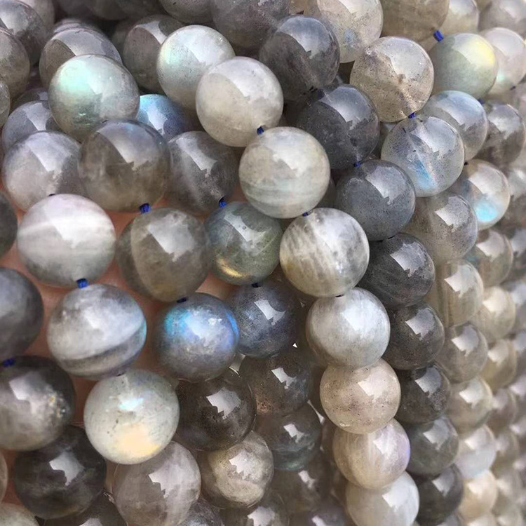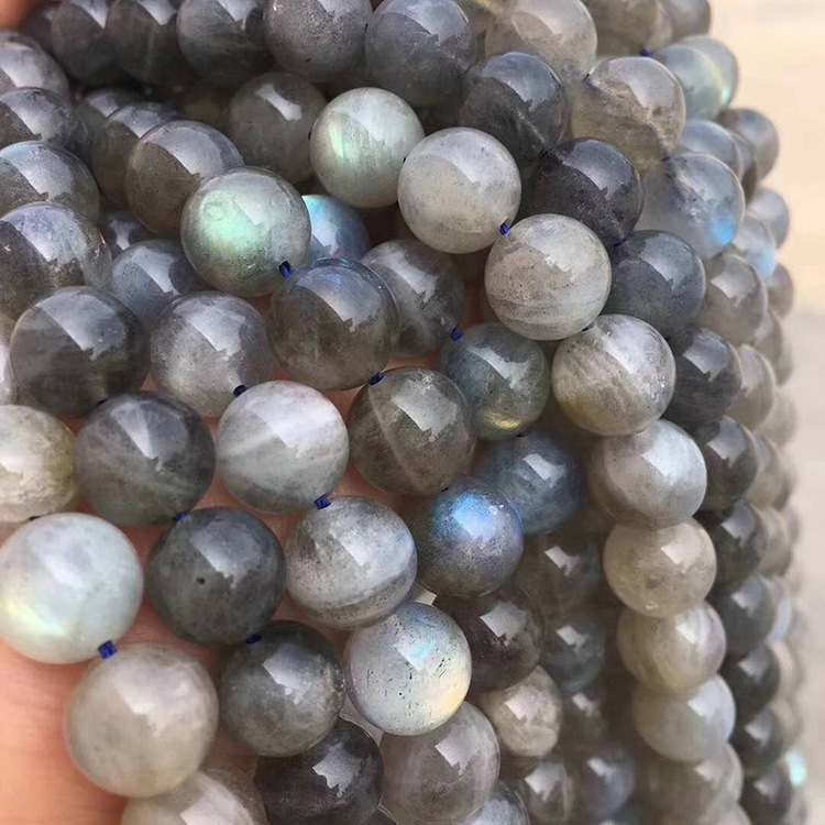 拉长石 灰月光 闪光石长链 水晶半成品圆珠手链 散珠手串饰品配件