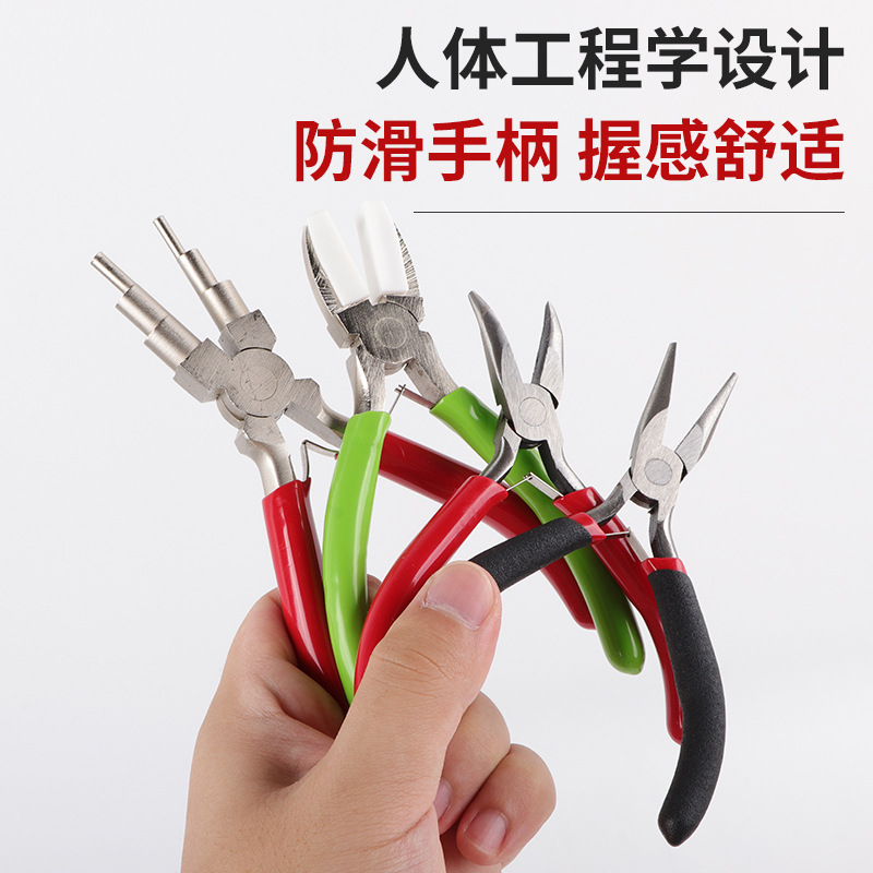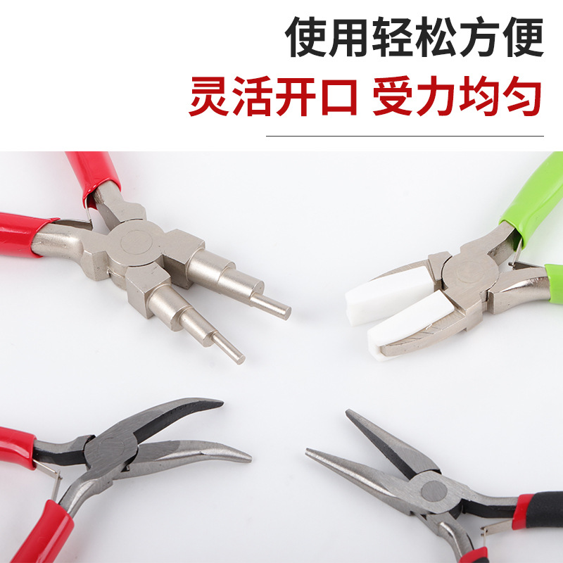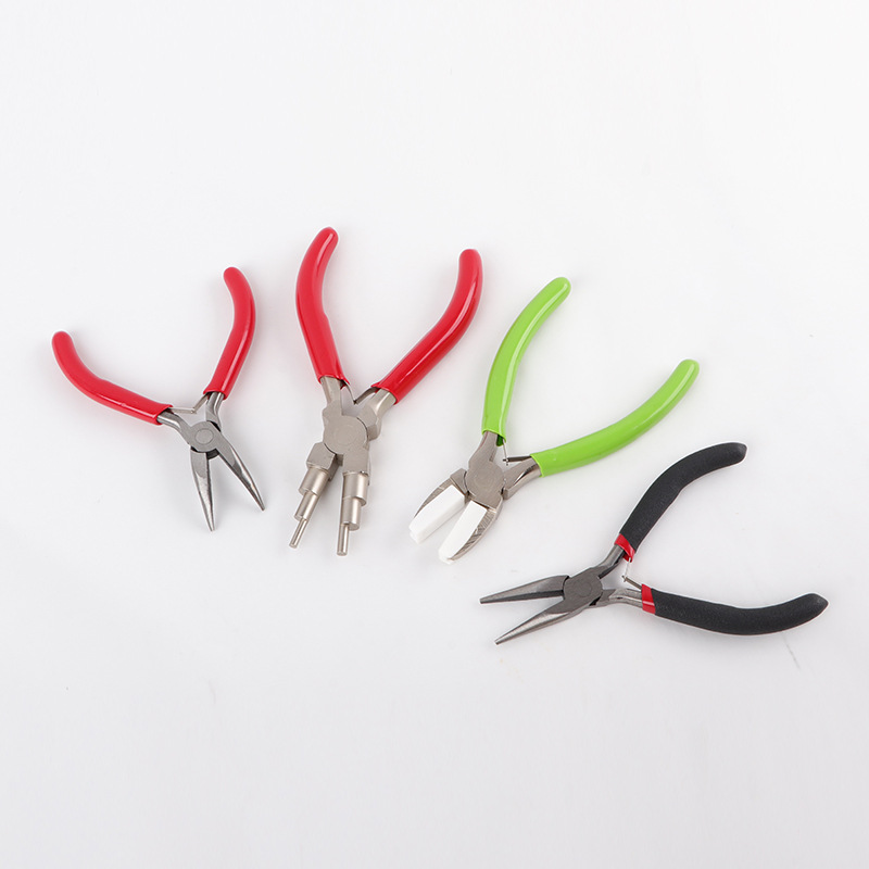 DIY手工钳多功能尼龙钳迷你钳 6节元 尖嘴钳 弯嘴钳 珠宝钳四件套
