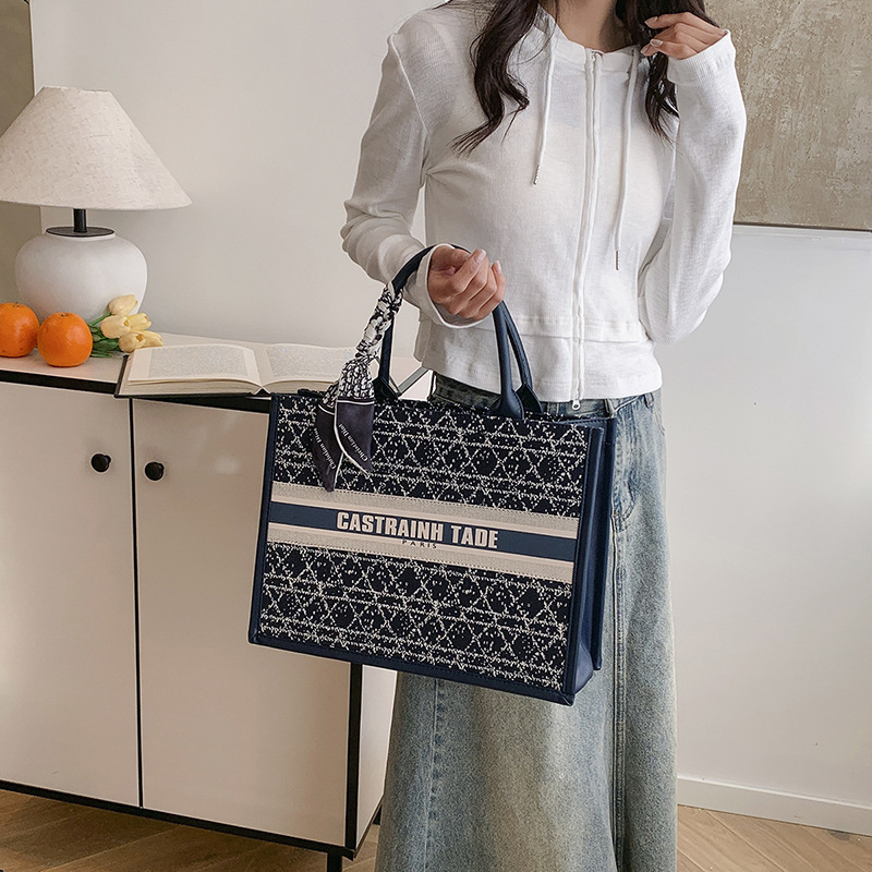 跨境外贸手提托特包包女新款字母印花2025新款大包洋气百搭休闲包