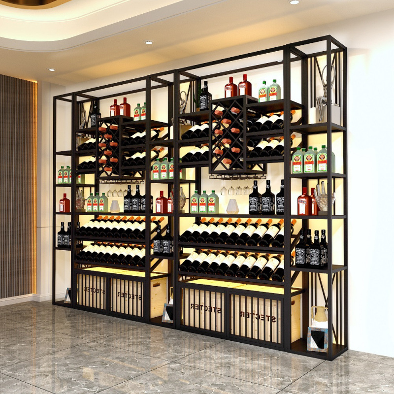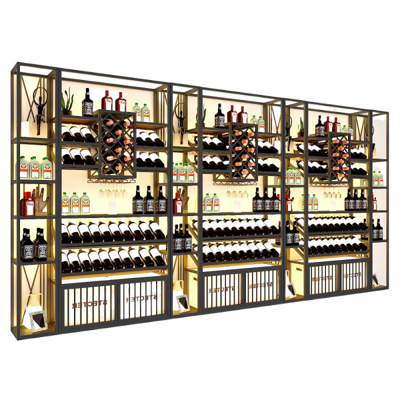 餐厅创意落地式多层酒柜酒庄欧式发光红酒收纳展示架陈列葡萄酒架