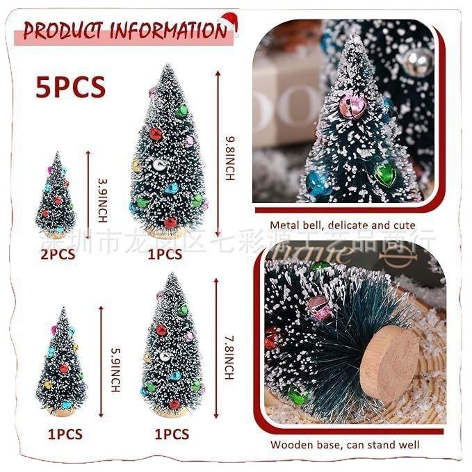 圣诞树桌面摆件迷你雪塔松松针树迷你型塔松树圣诞铃铛圣诞节装饰