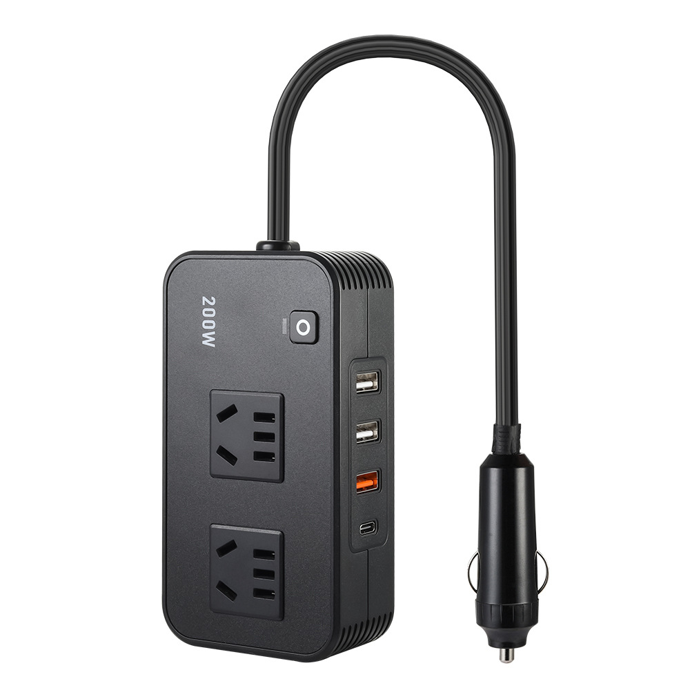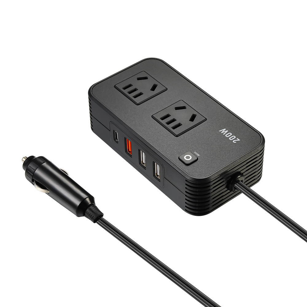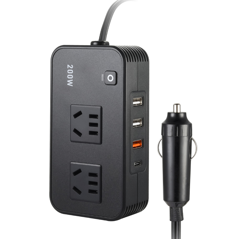 200W车载逆变器12V转220V双国标插座+QC3.0快充点烟器转换器变压