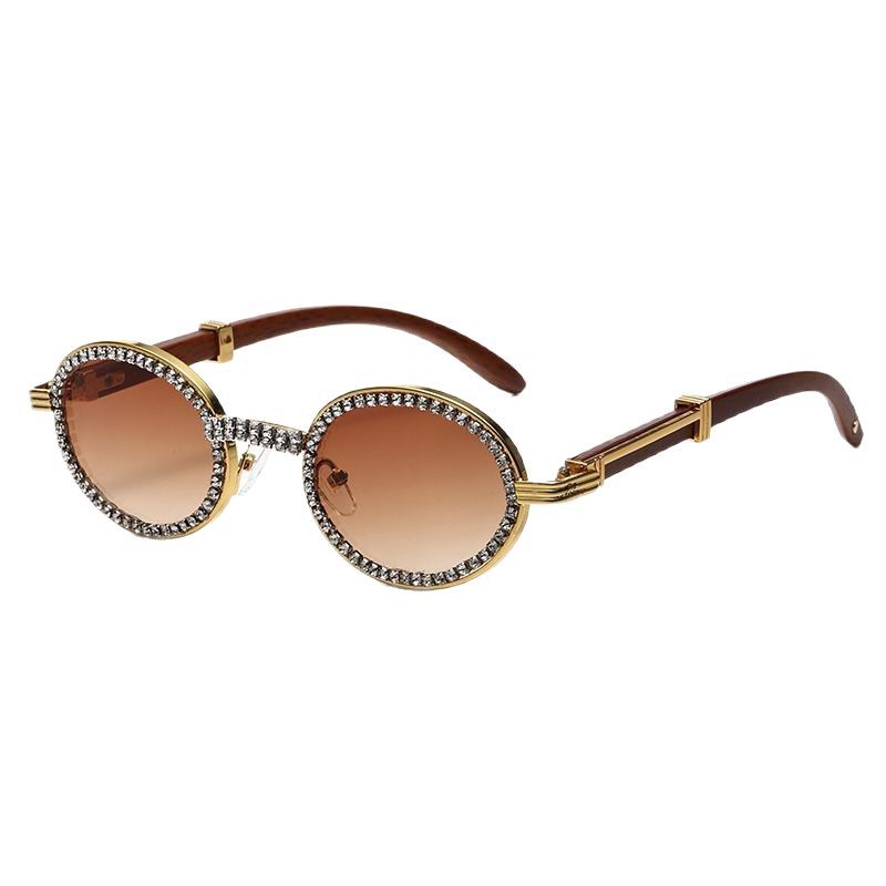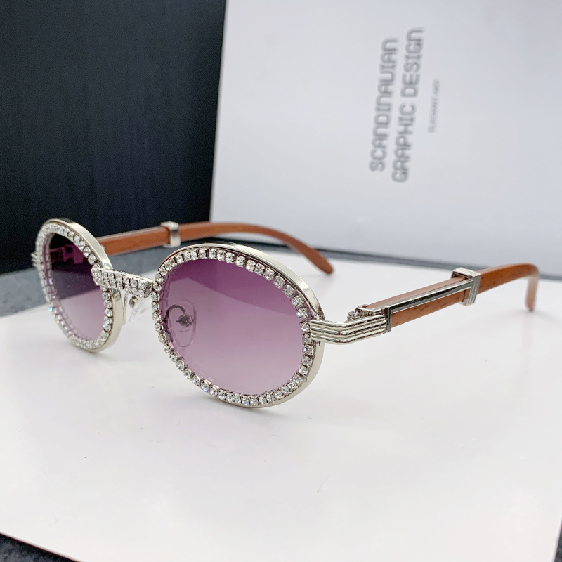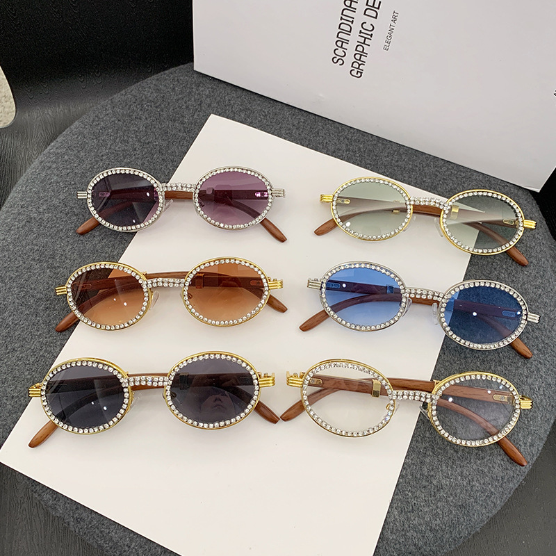 街拍新款圆形精致手工链条平光镜仿木纹复古圆框墨镜小框太阳镜