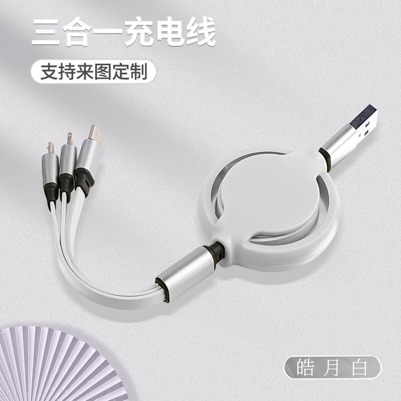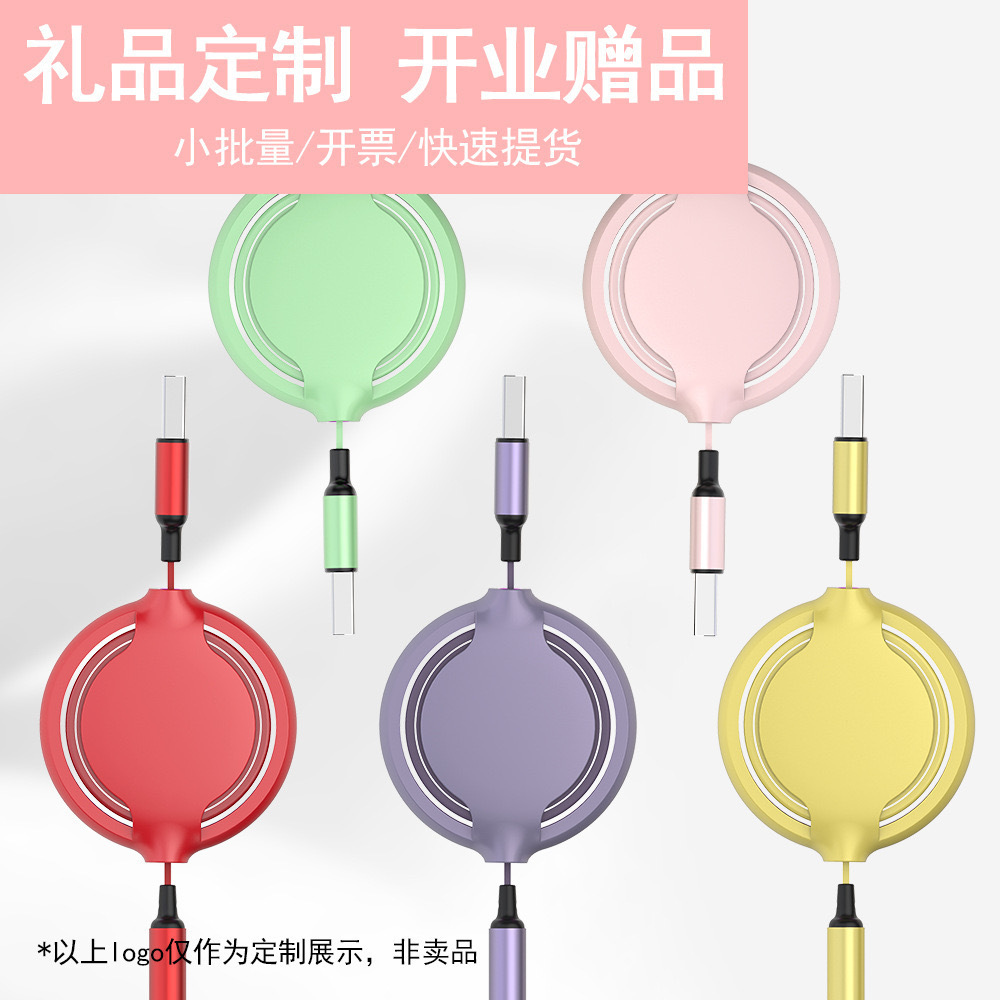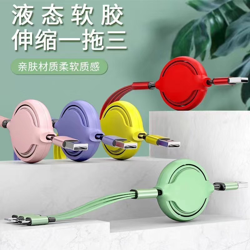 伸缩一拖三手机快充线三合一数据线适用安卓type-c充电线印制logo