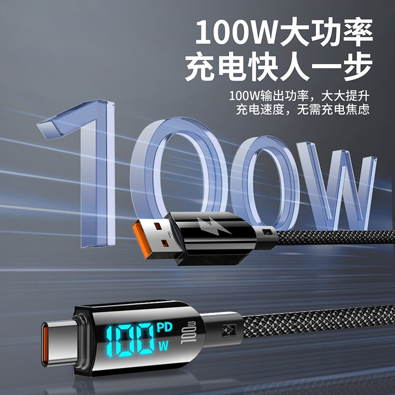 100w数显数据线适用苹果27W手机充电线双type-c转USB15快充批发
