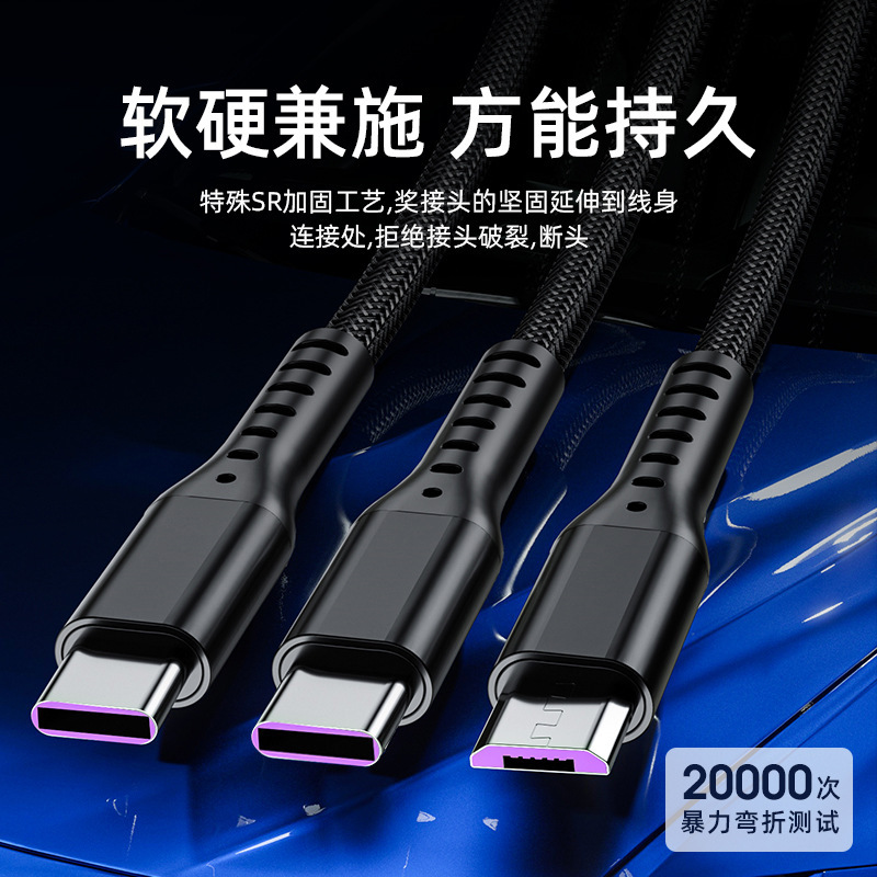 高品质66W超级快充一拖三数据线 5A三合一充电线logo礼品工厂批发