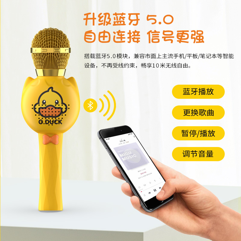 小黄鸭儿童麦克风话筒音响一体机无线蓝牙K歌玩具小朋友奖励礼物