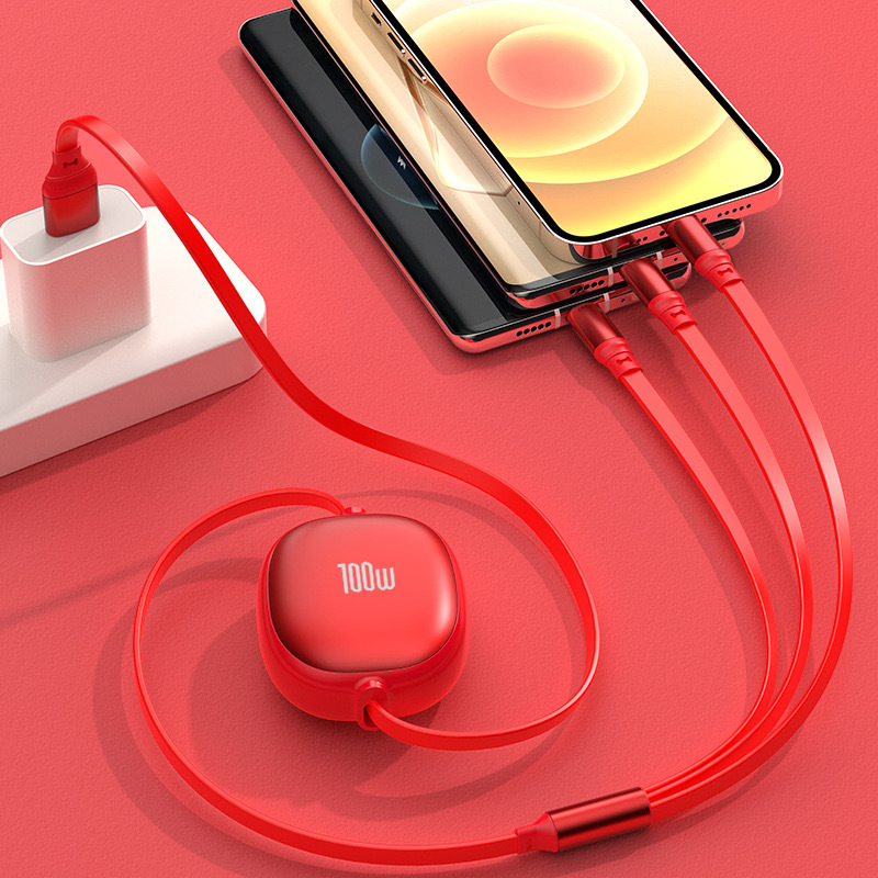 快充三合一数据线伸缩批发6a一拖三充电线logo车载手机100W快充