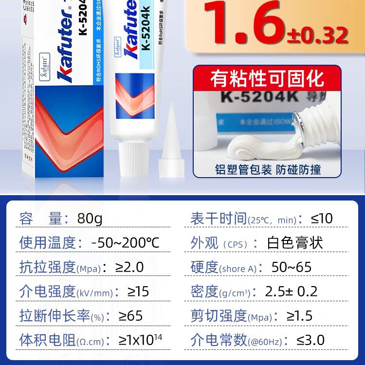 卡夫特K5204导热硅脂导热硅胶系数1.6智能控制模块散热器粘接凝胶