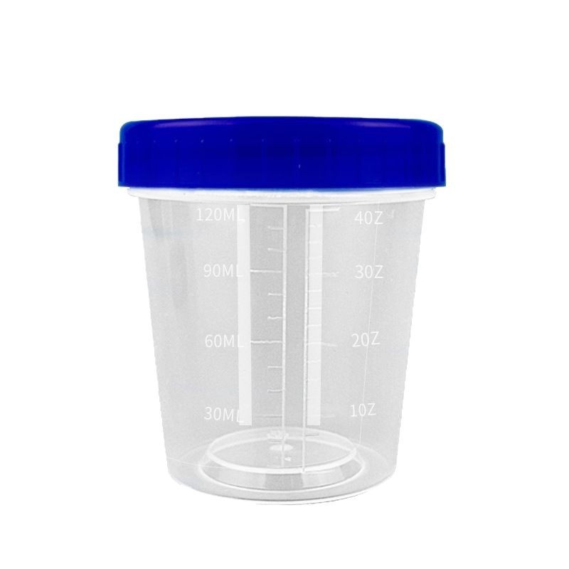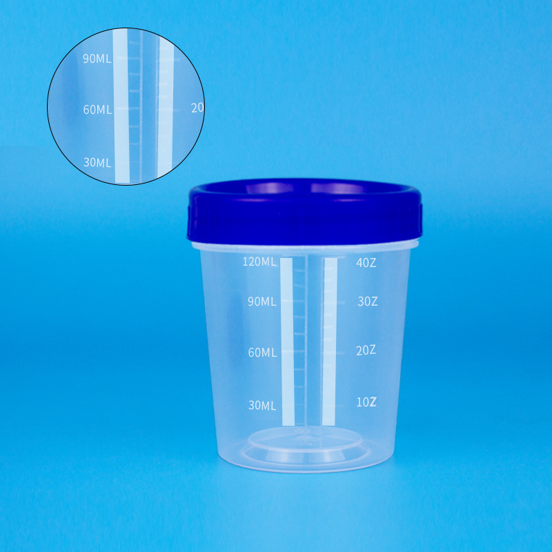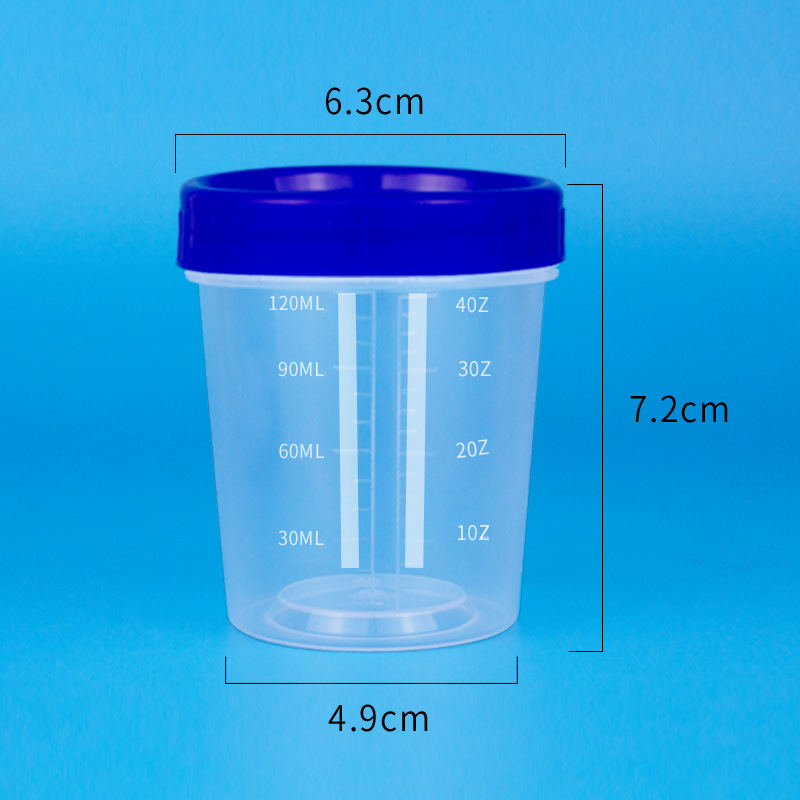 厂家供应多规格刻度量杯PP材质120ml蓝盖量杯透明分装塑料刻度杯