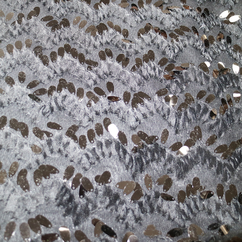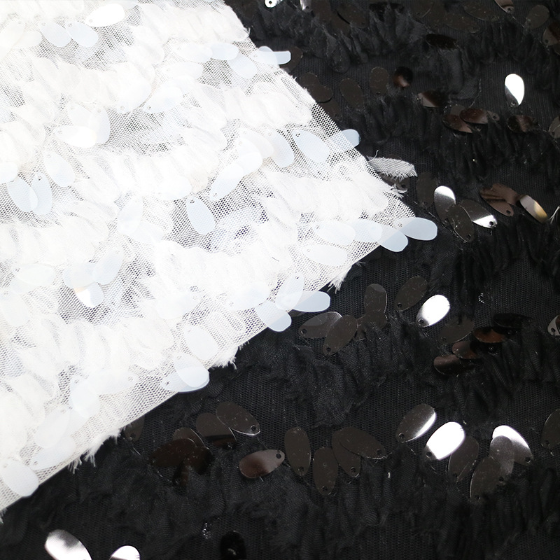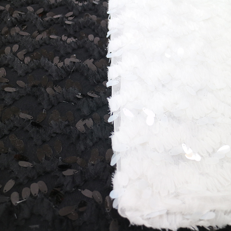现货供应水滴珠片波浪纹盘带绣黑白柔软礼服演出服时装珠片面料