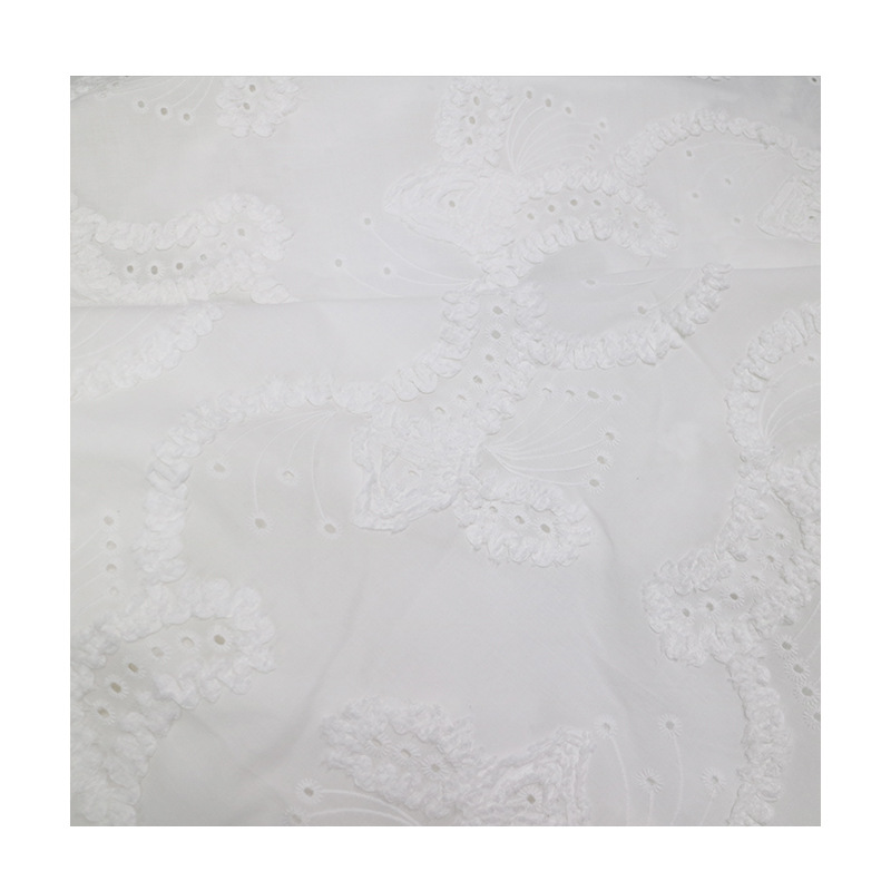 厂家棉布盘带打孔绣花面料全棉绣花布春夏服装礼服连衣裙面料批发