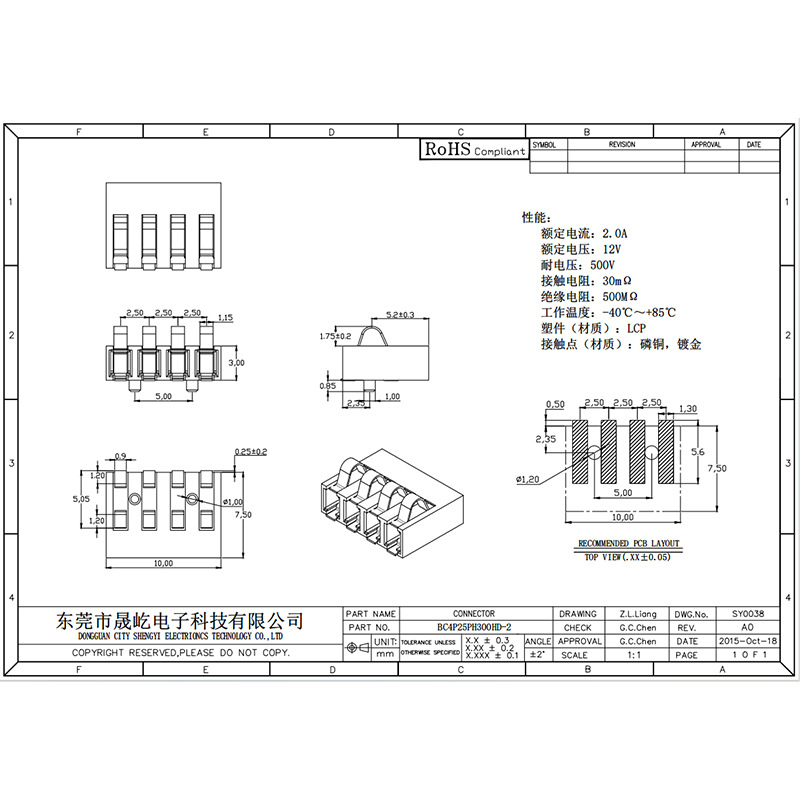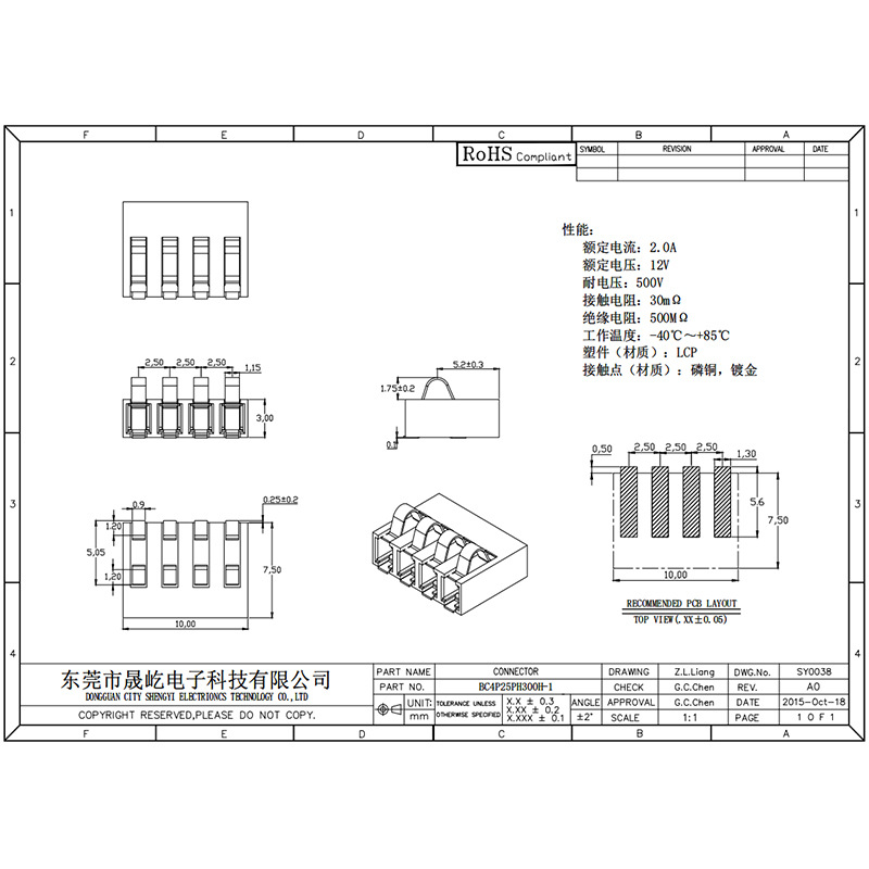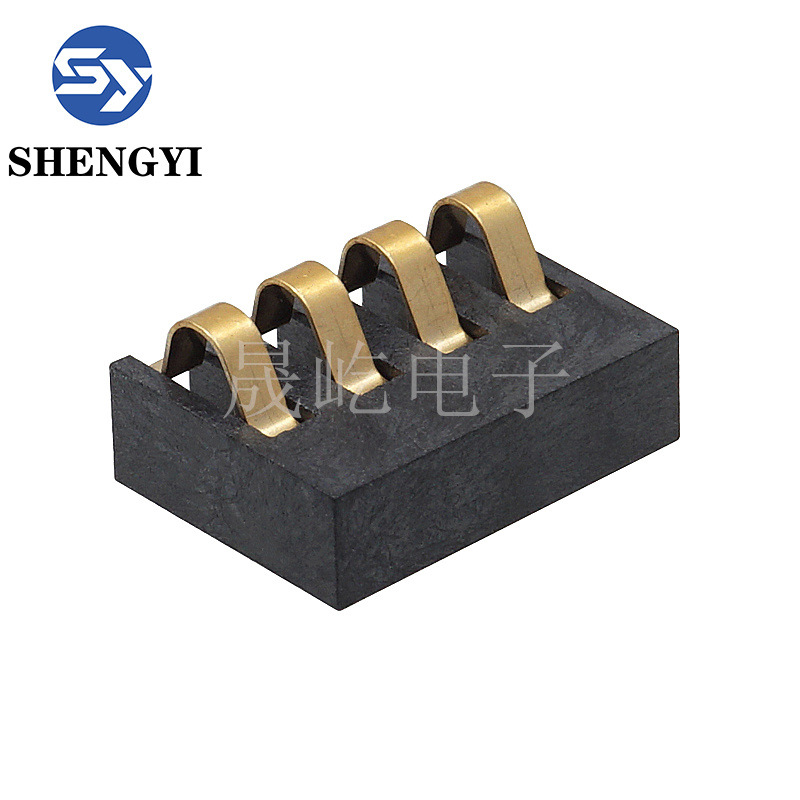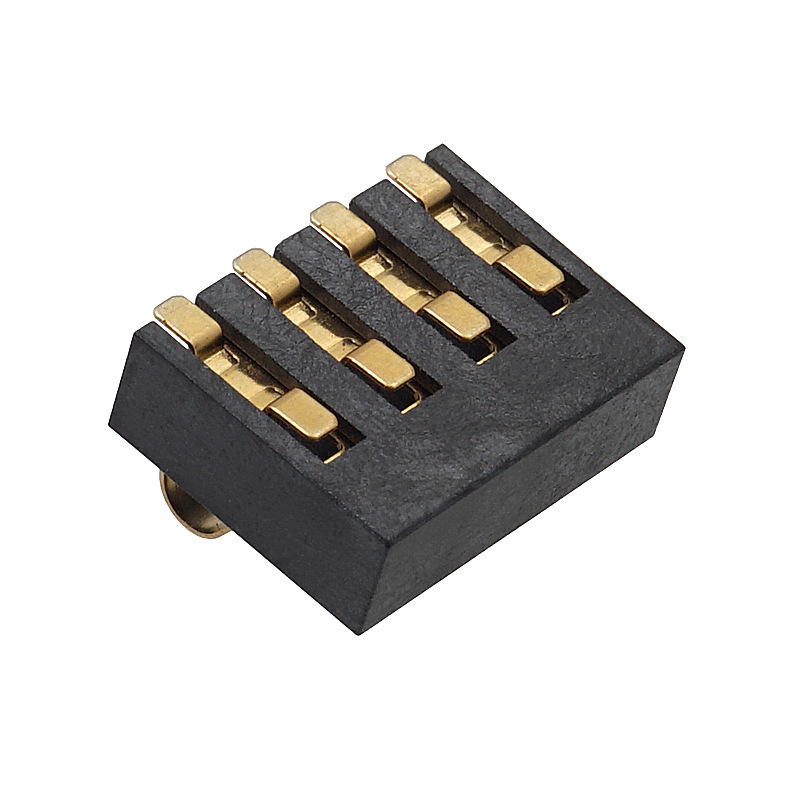 4PIN卧式正压弹片电池连接器2.5PH间距塑高3.0有柱无柱电池座接头
