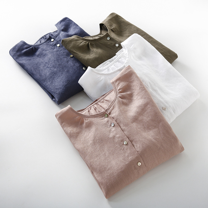 长袖女士亚麻衬衫2025春夏新款薄款甜美宽松夏天可穿女款衬衣上衣