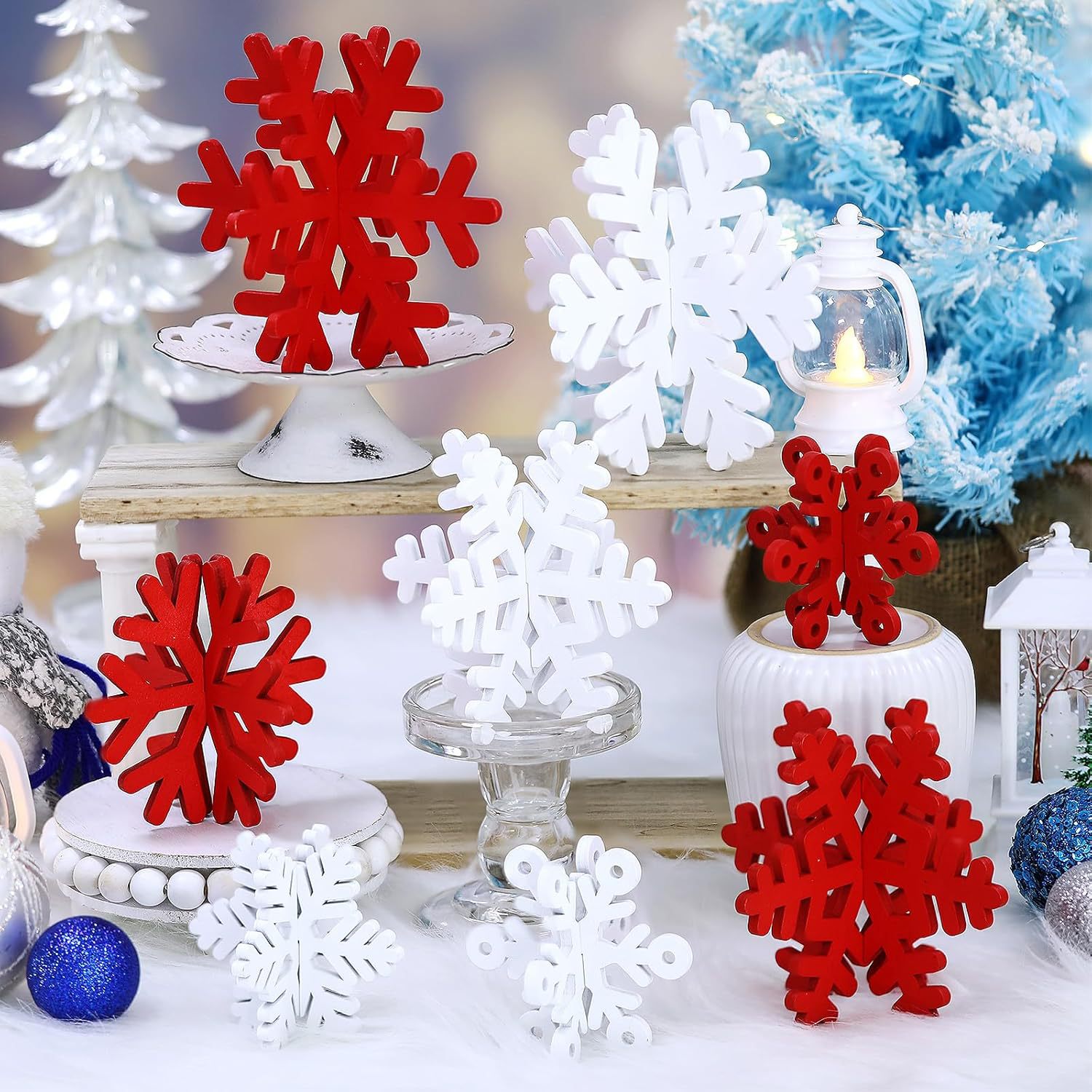 16件圣诞木制雪花派对桌面分层托盘装饰3D雪花桌标志站立中心摆饰