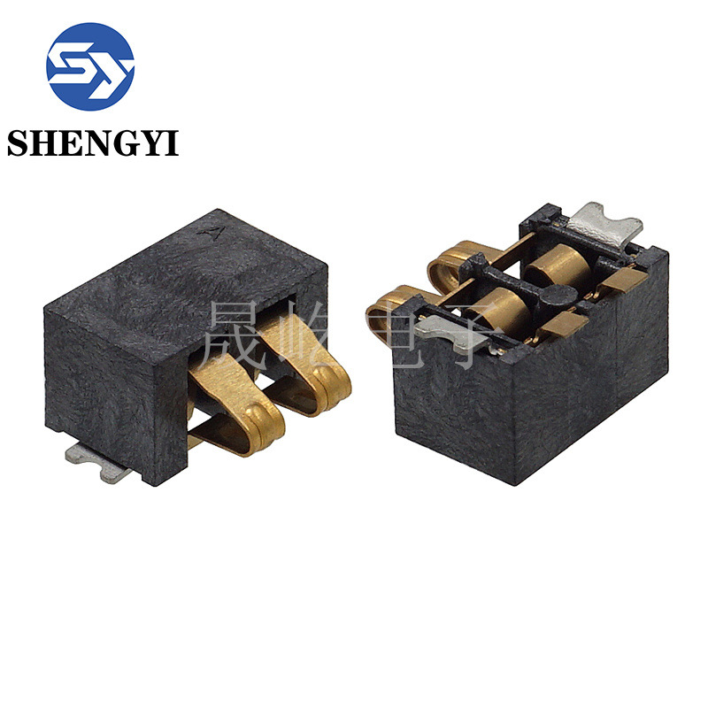 2.5间距卧式塑高3.8弹片电池连接器金手指触点镀金带焊片医疗器械