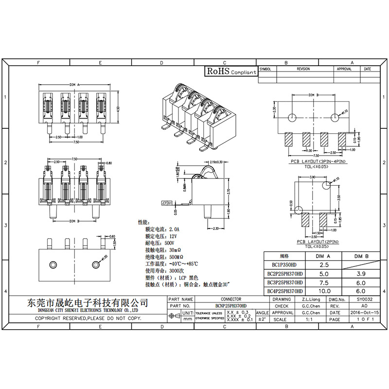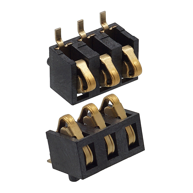 电池座1P-2P-3P-4P间距2.5H塑高3.7金手指触点电源连接器有柱接头