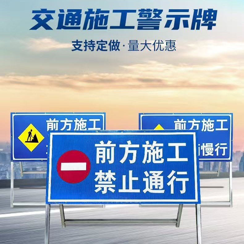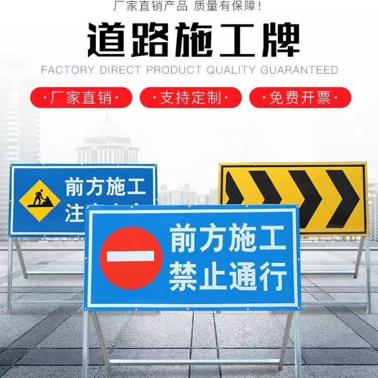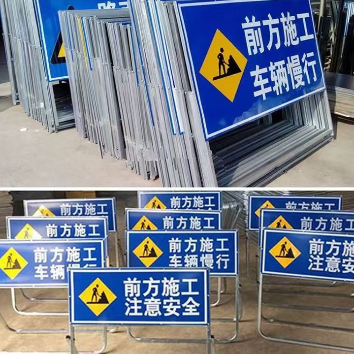前方道路施工警示牌导向指示牌安全牌电力牌交通标志防撞